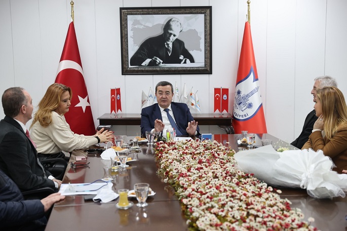 Ziyaret sonunda Turistik İşletmeler Birliği Başkanı Mehmet İşler, tüm üyeler adına Konak Belediye Başkanı Abdül Batur’a çiçek takdim etti.