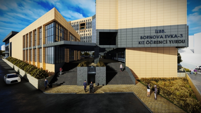 Bornova Erzene Mahallesi’nde 32 bin metrekare kullanım alanına sahip olacak kız öğrenci yurdunda, 229 kişilik konferans salonu, 94 kişilik kütüphane, 300 kişilik yemekhane, 120 kişilik kafeterya, resim ve müzik atölyeleri, 300 metrekarelik spor salonu, çamaşırhane, 80 araçlık otopark ve sığınak bulunacak. Yeşil odaklı tasarlanan yurt binasında geniş bir iç avlu olacak ve katlarda bahçeler yer alacak.