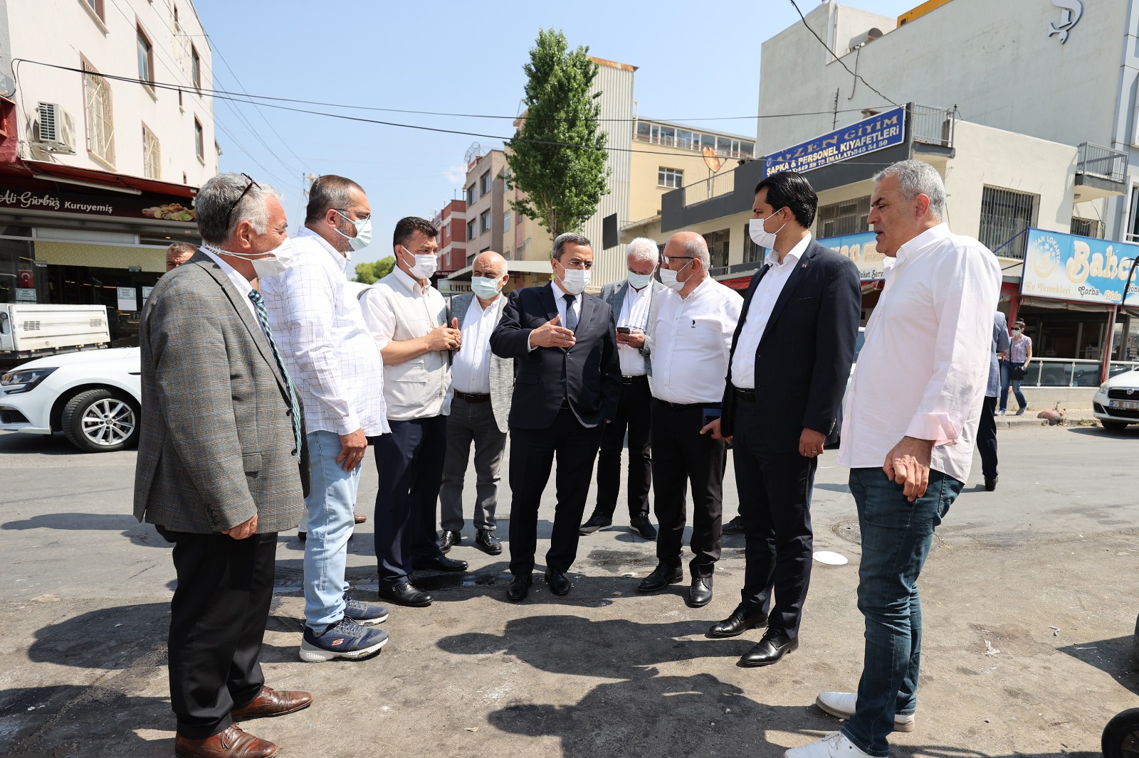 Gıda Çarşısı esnafının sorunlarını dinleyen Başkan Batur, toplantının hemen ardından bölgede incelemelerde bulundu. Esnaf, Batur’dan çarşı içi trafiği rahatlatacak bazı düzenlemeler ile ortak çöp dökme alanı ile ilgili değişiklik talep etti. Çarşı esnafı ve ile birlikte en çok sorun yaşanan noktalara giderek sorunları yerinde tespit eden Başkan Batur, en kısa sürede çözüm üreteceklerini ve sorunları ortadan kaldıracaklarını söyledi. Batur, “Gıda Çarşısı esnafı, günün her saatinde İzmir ve çevresine hizmet ederek ekonomiye büyük katkılar sağlıyor. Biz her zaman ekonominin çarklarının esnafla birlikte döndüğünü ifade ettik, etmeye de devam ediyoruz. O nedenle Gıda Çarşısı esnafının sorunlarını bugün buraya gelerek dinledik, yerinde tespit ettik. Esnafımız bizden Gıda Çarşısı'nın bazı noktaları ile ilgili iyileştirilme taleplerinde bulundular. En kısa sürede sorunlara çözümler bularak, sorunları ortadan kaldıracağız. Biz her zaman, pandemide daha da öncelikli olmak üzere esnafın yanında olduk, olmaya da devam edeceğiz” dedi.
