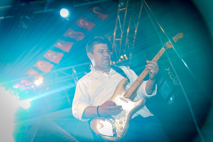 Konserde, gruba çiçek verip teşekkür etmek için sahneye çıkan Tire Belediye Başkanı Hayati Okuroğlu, solist Hakan Apak’ın ricasıyla gitarı aldı ve çalmaya başladı.