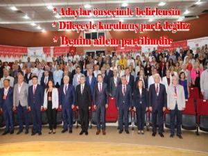 Ben bugün bulunduğum makamda kimseye imtiyaz sağlayamam benim önceliğim partimin ve partilimin hukukunu korumaktır. Benim Yerel seçimler için her adaya eşit mesafedeyim, benim ailem ve akrabam partili üyelerimdir. Benim arkadaşım benim akrabam, benim yakınım sadece ve sadece CHP dir. CHP olarak 29 Mart Yerel seçimlerinde başarılı olmak zorundayız bu anlayışla bu başarıya odaklanmalıyız dedi.