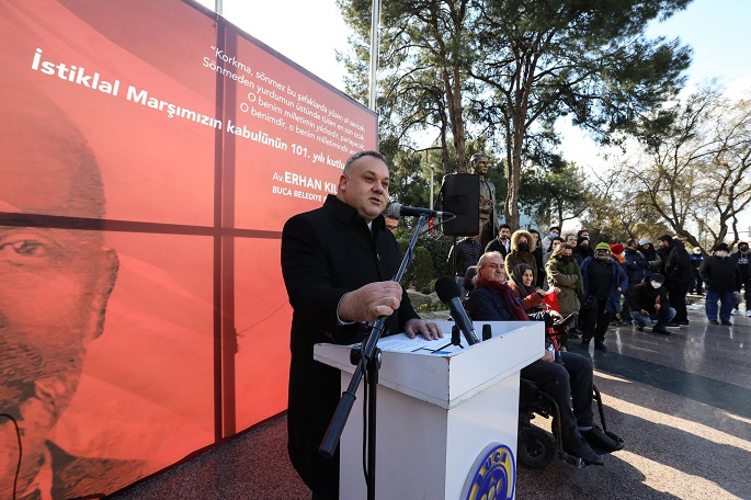 Buca Belediyesi, İstiklal Marşı’nın kabulünün 101. yılını kutlamak ve milli şair Mehmet Akif Ersoy’u anmak içintören düzenledi.