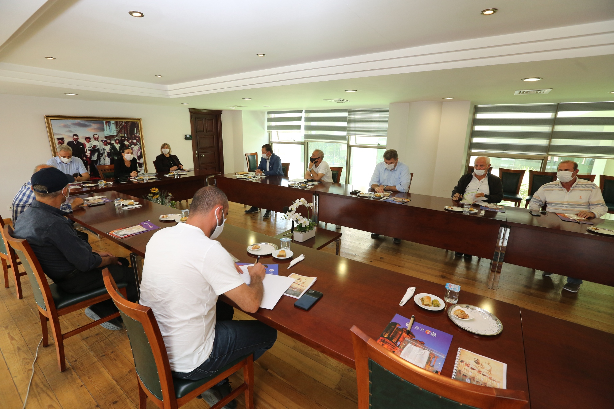 1 Haziran itibariyle çıkan genelgeler gereğince işletme faaliyetine geri dönen esnaf temsilcilerine yönelik düzenlenen toplantıya Ticaret Odası, Esnaf ve Sanatkârlar Odası, Ziraat Odası, Efes Turistik Eşya Üreticileri Satıcıları Derneği, Otel Pansiyon ve Turistik Eşya Satıcıları Esnaf Odası, PATÜYAB, Selçuk Efes Küçük Oteller Derneği, Şoförler Odası gibi sivil toplum kuruluşları ve meslek odalarından temsilciler katıldı.