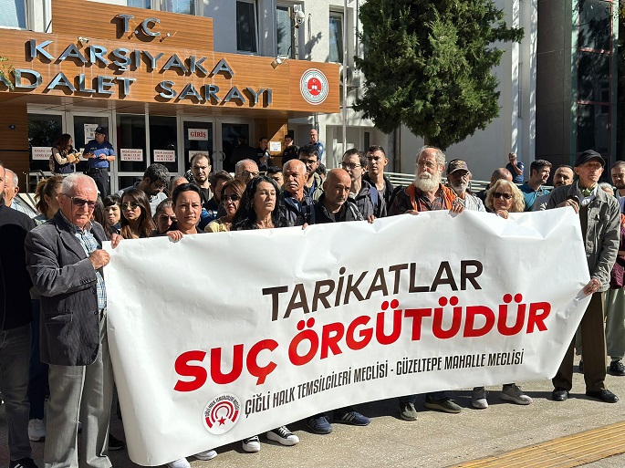 Çiğli Halk Temsilcileri Meclisi’nin çağrısı ile 18 Ekim Cuma günü saat 11.00’da Karşıyaka Adliyesi önünde buluşan yurttaşlar bir kez daha mahallelerinde, ülkelerinde tarikatları, cemaatleri istemediklerini dile getirdiler. Çiğli Halk Temsilcileri Meclisi ve Güzeltepe Mahalle Meclisi açılmak istenen yurda ilişkin Anayasa’ya, 677 sayılı Tekke ve Zaviyelerin Kapatılması Kanunu’na, 430 sayılı Tevhidi Tedrisat Kanunu’na aykırı şekilde tarikat faaliyetlerinin gerçekleştirilmesinin önünü açan, izin veren kamu görevlileri hakkında görevi kötüye kullanma suçundan suç duyurusunda bulundu.