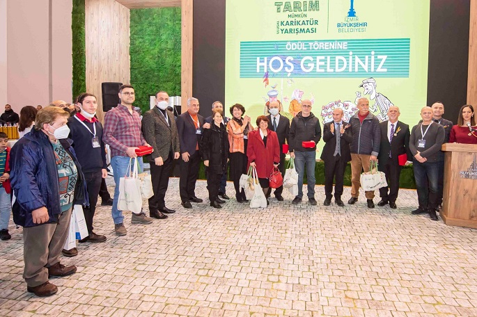 İzmir Büyükşehir Belediyesi’nin “Başka Bir Tarım Mümkün” temasıyla bu yıl ilkini düzenlediği ulusal karikatür yarışmasında dereceye girenler ödüllerini Agroexpo-17. Uluslararası Tarım ve Hayvancılık Fuarı etkinlikleri kapsamında Fuar İzmir’de aldı. Başkan Tunç Soyer birincilik ödülünü Kürşat Zaman’a, ikincilik ödülünü Cemalettin Güzeloğlu’na, üçüncülük ödülünü ise Hamit Gış’a takdim etti.