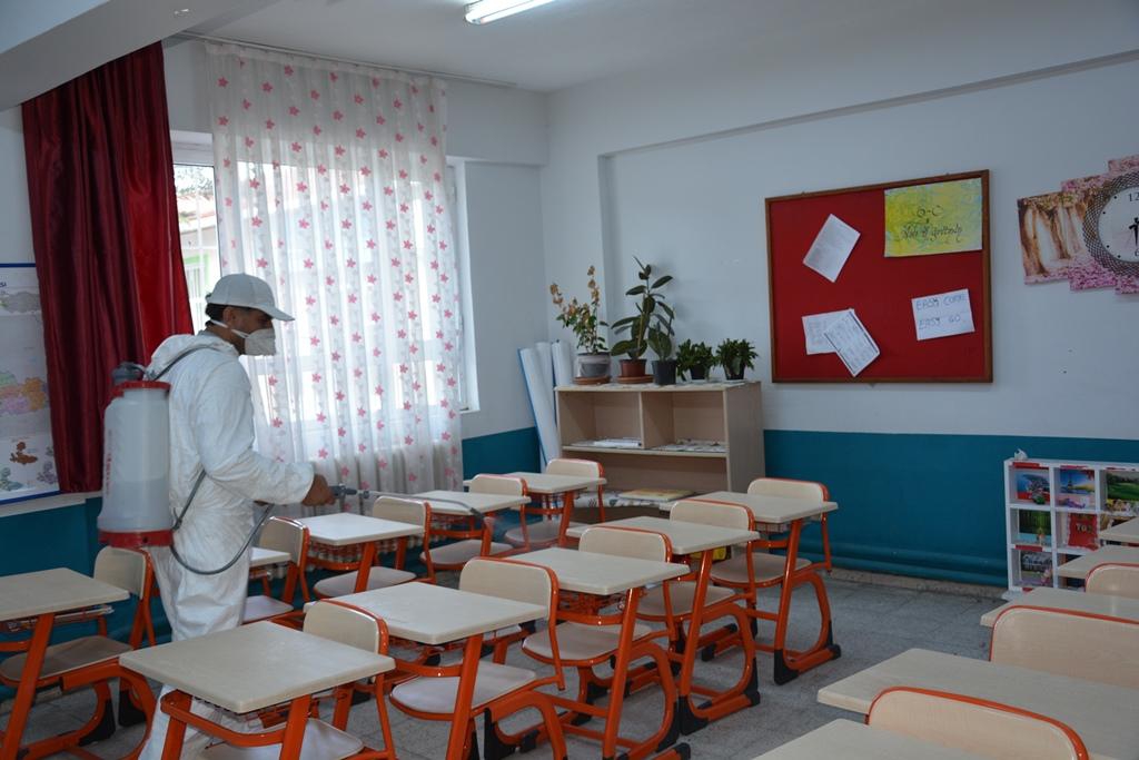 Hafta sonu gerçekleşecek LGS öncesi Dikili Belediyesi tarafından okullarda dezenfeksiyon çalışması yapıldı.