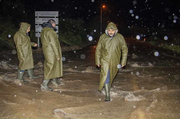 Ekipler, kepçe, vidanjör, traktör ve çok sayıda personelle gece boyunca görev başındaydı.