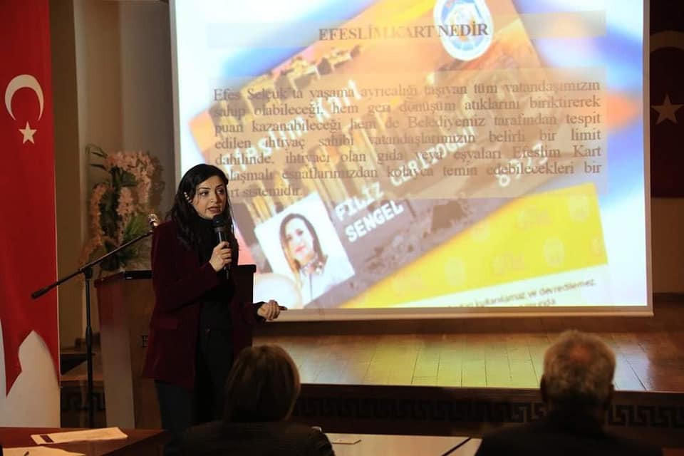 Efes Selçuk Belediyesi Çevre Koruma ve Kontrol Müdürü Gonca Erdem ve kurum personelinin gerçekleştirdiği bilgilendirme toplantısında Efeslim Kart ile kentte başlayacak yeni dönem hakkında bilgi verildi.