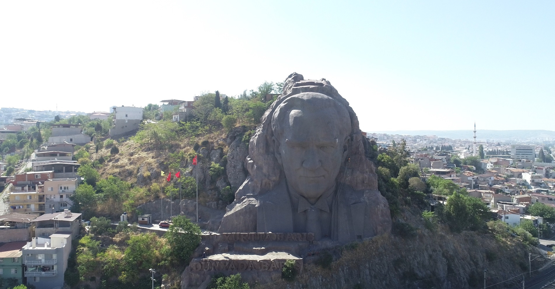 Buca’nın hatta İzmir’in simgeleri arasında yer alan Türkiye’nin en büyük, dünyanınsa 10’uncu büyük rölyef maskı olan Atatürk maskı, Buca Belediyesi tarafından bakıma alındı. Çaldıran mahallesi çevre yolu güzergahına bakan kayalıklarda konumlanan maskın bakım ve temizlik işlemleri için profesyonel dağcılık ekibinden destek alındı.