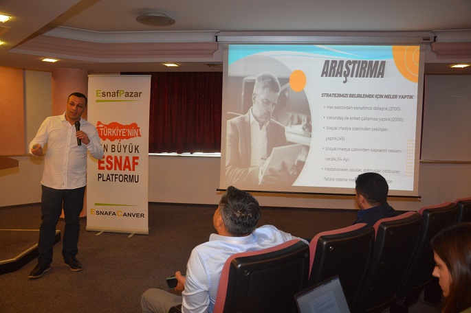 Oda başkanlarına sunum hazırlayan ESNAFACANVER E-ticaret A.Ş. Genel Müdürü Yaşar Yenikale, amaçlarının online ticaret konusunda esnaf sanatkarların önünü açmak ve online alışveriş siteleri ile çalışan esnafa yeni bir alternatif sunmak olduğunu söyledi.