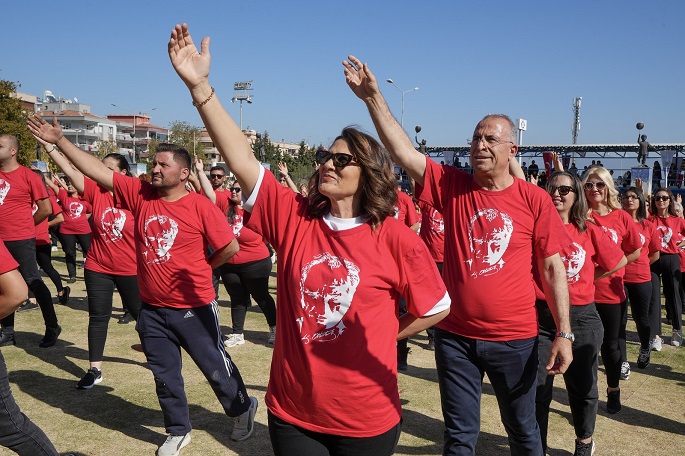 Gaziemir Belediyesi’nin 29 Ekim Cumhuriyet Bayramı’nda düzenlediği Harmandalı Gösterisi’nde 750 Gaziemirli, Cumhuriyet’in 101. yılını coşkuyla kutlamak için bir araya geldi.