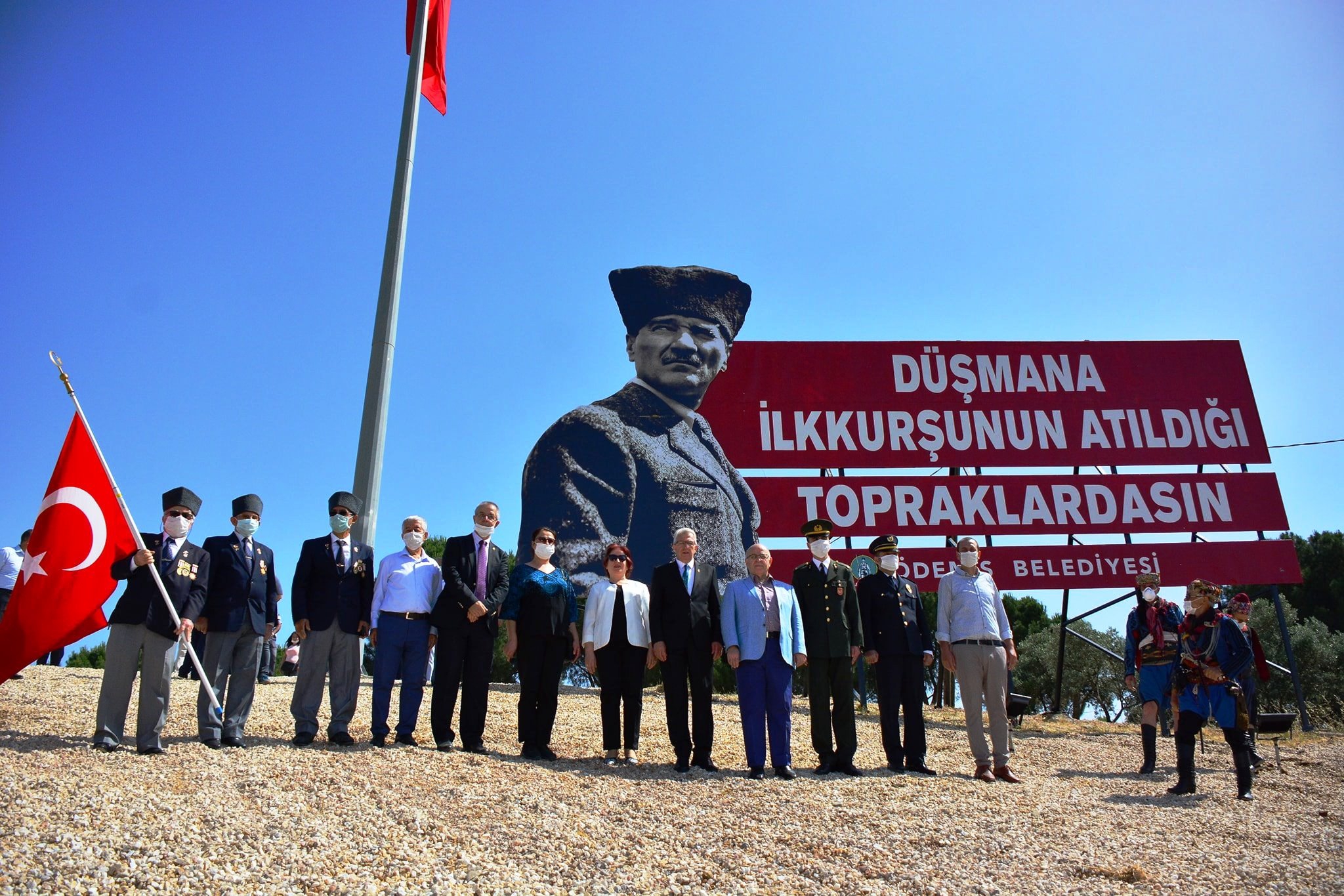 Kuvayı Milliye’nin temellerinin atıldığı tarihi topraklardaki İlkkurşun Anıtı’na Ödemiş Belediye Başkanı Mehmet Eriş tarafından çelenk sunuldu. Daha sonra Büyük Önder Gazi Mustafa Kemal Atatürk, silah arkadaşları, şehitlerimiz ve gazilerimiz için Saygı Duruşu gerçekleştirilerek İstiklal Marşı okundu.