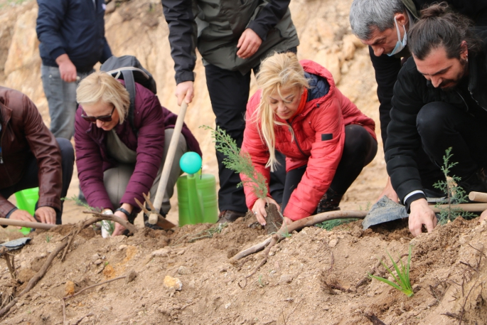 “Bu saha içinde yaklaşık olarak 2 bin 150 adet kızılçam, 500 tane fıstık çamı, 700 adet dekaraselvi olmak üzere toplamda 3350 adet fidan toprakla buluşturulmuş olacak”