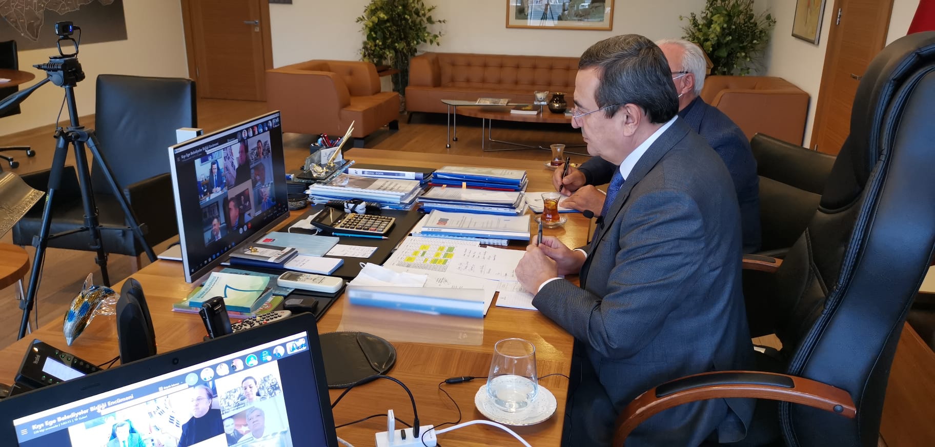 Kıyı Ege Belediyeler Birliği’nin encümen toplantısı pandemi nedeniyle video konferansla yapıldı. Birliğin başkanlık görevini de yürüten Konak Belediye Başkanı Abdül Batur’un yönetiminde yapılan toplantıya, Selçuk Belediye Başkanı Filiz Ceritoğlu Şengel, Kuşadası Belediye Başkanı Ömer Günel, Edremit Belediye Başkanı Selman Hasan Arslan, Çeşme Belediye Başkanı Ekrem Oran, Milas Belediye Başkanı Muhammet Tokat, Narlıdere Belediye Başkanı Ali Engin ile Küçükkuyu Belediye Başkanı Cengiz Balkan katıldı.
