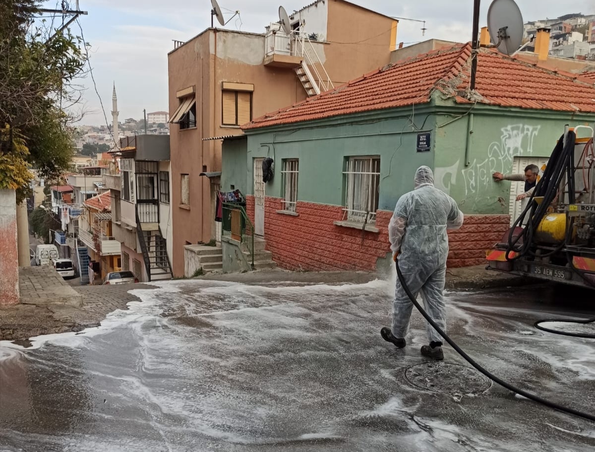 Sokağa çıkma kısıtlaması ile boş kalan sokaklarda çalışmalarını yoğunlaştıran Konak Belediyesi temizlik ekipleri, temizlikle beraber sokaklarda yıkama ve dezenfeksiyon çalışması da yaptı. Kısıtlamanın ilk gününde otuzdan fazla noktada yıkama ve dezenfeksiyon yapan ekipler, cemaatin iki gün boyunca uzak kalacağı camileri de unutmadı. Hafta içinde cemaatin sağlıklı bir ortamda ibadet edebilmesi için camilerin iç ve dış mekanlarındaki tüm ortak kullanım alanları dezenfekte edildi. Temizlik ekipleri gelen talep doğrultusunda bazı kurum binaları ve apartmanlarda da dezenfeksiyon çalışması yaptı. Onlarca sokak ise baştan aşağı yıkanarak dezenfekte edildi. Konak’ın tüm sokaklarında uygulanacak çalışmalar, her kısıtlamada aksamadan sürdürülecek.
