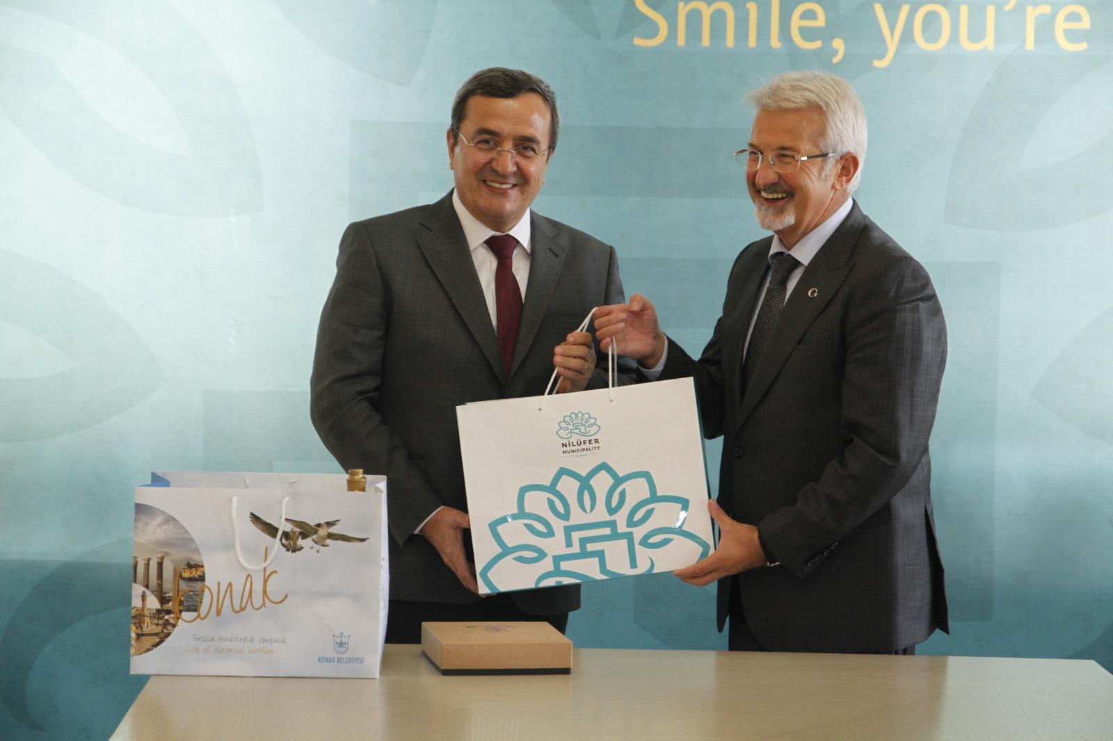 Konak Belediye Başkanı Abdül Batur, Bursa Nilüfer Belediye Başkanı Turgay Erdem ile işbirliği protokolüne imza attı. İki belediye ortak proje yapacak, AB projelerinde partner olacak.