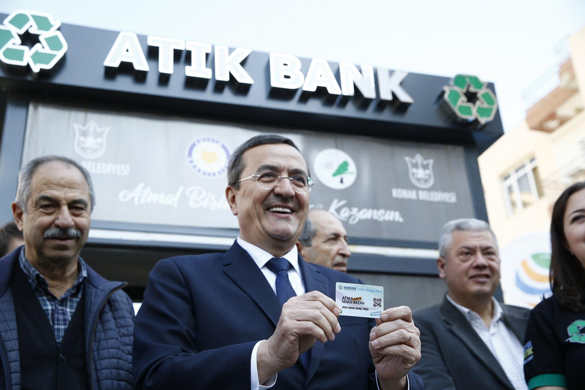 Konak Belediyesi’nin Mensan Geri Dönüşüm işbirliğiyle, ilçede pilot bölge olarak seçilen 5 ayrı mahallede kurduğu atık toplama üniteleri hizmete açıldı. “Atık Bank” olarak isimlendiren üniteleri, düzenlediği basın toplantısında Konaklıların hizmetine sunan Konak Belediye Başkanı Abdül Batur, çevreye duyarlılığın bir belediyenin en büyük sorumluluklarından biri olduğuna dikkat çekerek, “Konak Belediyesi’nde de bu bilinçle hareket ediyoruz. Daha önce evlerde biriken ilaçları çöpe atılmadan toplayarak imha etmek ve elektronik atıkların geri dönüşüme kazandırmak için iki ayrı çalışma başlatmıştık. Bu iki projemizi başarıyla sürdürüyoruz. Ve şimdi Konak için büyük bir adım daha attık: İzmir’de geri dönüşümde bir ilk olan projemizi hayata geçirerek, Konak’ta “Atık Bank” dönemi başlattık” diye konuştu.