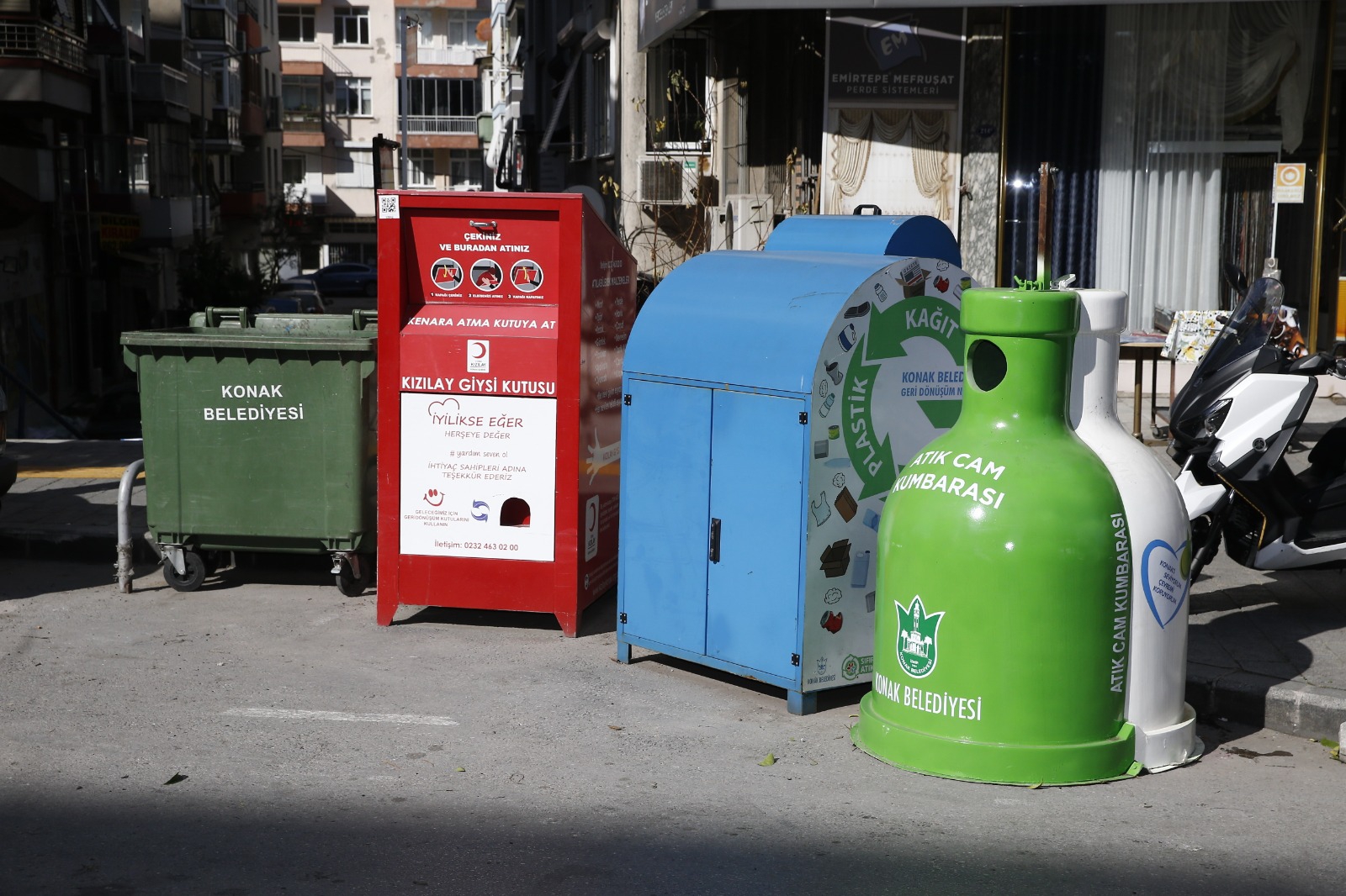 Sıfır Atık Yönetimi kapsamında, Konak’ta belirlenen bölgelere çöp konteyneri, cam kumbarası, tekstil geri dönüşüm kumbarası ve ambalaj geri dönüşüm kumbaraları yerleştirildi. Konak Belediyesi Çevre Koruma ve Kontrol Müdürlüğü ekipleri tarafından geniş cadde, sokak, meydan ve uygun alanlara yerleştirilen Atık Toplama Noktaları ile vatandaşın da geri dönüşüm kumbaralarına erişimi kolaylaştırıldı. 50 noktada tüm atık toplama üniteleri yer alırken, ikili ve üçlü üniteler haline 100 ayrı konumda Atık Toplama Noktası oluşturuldu. İlçe genelinde yaygınlaştırılacak Atık Toplama Noktaları sayesinde, Konaklılar evlerinde ayrıştırdıkları evsel atıklarını tek noktaya getirerek geri dönüşümü kaynağında başlatacak. Vatandaşlar, organik atıkları ve çöpleri çöp konteynerine, kağıt, plastik ve metal ambalaj atıklarını ambalaj geri dönüşüm kumbarasına, cam ambalaj atıklarını şeffaf ve renkli olarak iki ayrı bölmesi bulunan cam kumbaralarına, tekstil atıklarını ise tekstil geri dönüşüm kumbaralarına atarak çevrenin ve doğanın korunmasına katkı sağlayacak.