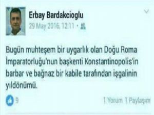 ADÜ Veterinerlik Fakültesi Zootekni Anabilim Dalı öğretim üyesi Prof. Dr. Erbay Bardakçıoğlu'nun kişisel sosyal medya hesabından 29 Mayıs'ta yaptığı, İstanbul'un fethiyle ilgili "Bugün muhteşem bir uygarlık olan Doğu Roma İmparatorluğu'nun başkenti Konstantinopolis'in barbar ve bağnaz bir kabile tarafından işgalinin yıl dönümü" paylaşımı tepki topladı.