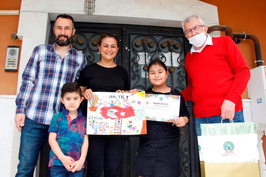 Başarılı öğrencilere ödüllerini veren Başkan Eriş, "Mustafa Kemal'in öğrencileri olarak 100. yılını evlerde ama coşkuyla kutladığımız 23 Nisan Ulusal Egemenlik ve Çocuk Bayramımız için belediyemizin düzenlediği şiir ve resim yarışmasında dereceye giren öğrencilerimize ödüllerini verdik. Çocuklarımızın gözlerindeki ışıltı bizlere güç ve moral verdi.