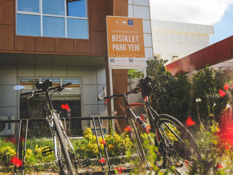 Seferihisar Belediye Binası, Atatürk Meydanı ve Sığacık Liman Caddesi’ne kurulan park yerlerinde bisikletler kilitlenerek park ediliyor ve EUROVELO hakkında ayrıntılı bilgilere ulaşılabiliyor.
