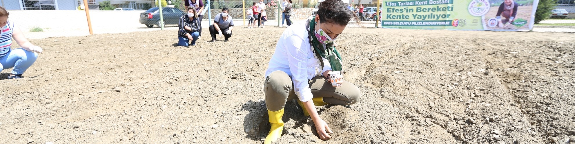 Efes Selçuk’un bereketli topraklarından yaptığı “Tüm Türkiye Eksin” çağrısını yineleyen Efes Selçuk Belediye Başkanı Filiz Ceritoğlu Sengel, şehir içinde kurulan Efes Tarlası Kent Bostanı’ nda kadınlarla birlikte kara karpuz ekti. Başkan Sengel, “Tüm Türkiye Eksin” çağrısıyla üretime katılmak isteyen herkesi www.tumturkiyeeksin.com adresine davet etti.