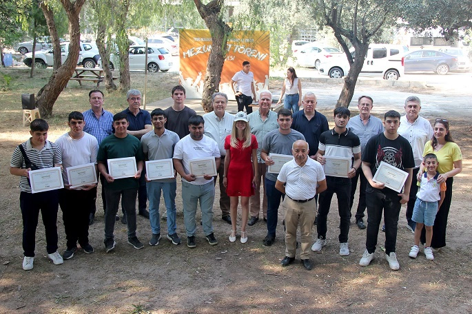 Öğrencilere sertifikalarını Terbay Genel Müdür Yardımcısı Abdullah Baysak, Bornova MESEM metal teknolojisi öğretmeni Hüseyin Savcı, çıraklık okulundan 20 yıl önce mezun olan fabrikanın bölüm sorumlularından İksan Çetinkoç ile Murat Kandemir verdi.