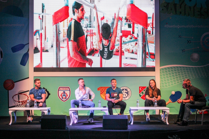 2019 Mersin Challenge Cup birincisi Nazlı Savranbaşı, 2021 yılında artistik jimnastik alanında Avrupa üçüncüsü Adem Asil, 2018 Akdeniz Oyunları şampiyonluğu yanı sıra 2019 Dünya Şampiyonası’nda dünya ikinciliği bulunan Ahmet Önder ve 2019 Dünya Jimnastik Şampiyonu İbrahim Çolak spora gönül vermiş ziyaretçilerle bir araya geldi.