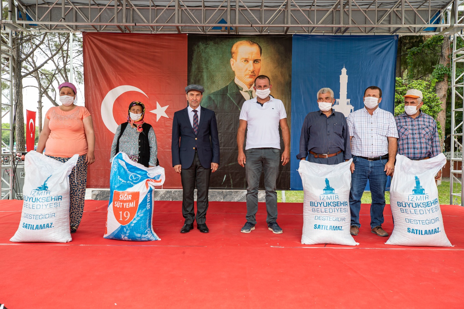 İzmir Büyükşehir Belediyesi’nintarım politikasının dört başlığının bulunduğunu, bunlardan ilkinin yerli tohumu gün ışığına çıkarmak olduğu kaydeden Soyer, “en büyük hazinemiz” dediği atalık tohumları çoğaltacaklarını söyledi. Soyer, “Yerli tohumları yok ediyorlar, buna izin vermeyeceğiz. O tohumları yaşatacağız. Dört başlıktan bir diğeri de mutlaka tarım ürünlerini işleyeceğiz. Tarım ürünü sadece tarım ürünü olarak kaldığı sürece değerini bulmuyor. Katma değerini büyütecek şekilde işlememiz lazım. Üçüncüsü, üretici tek başına hiçbir şeydir. Kooperatif çatısı altında mutlaka bir araya gelmek ve el ele vermek lazım. Siz bir araya gelirseniz, ancak o zaman köyünüzü pazarlayacak bir güç olabiliyorsunuz. Siz kooperatif çatısı altında örgütlenin ne üretiyorsanı z almaya söz veriyorum. Yeter ki, kooperatif çatısı altında örgütlenin. Dördüncüsü de; siz ürettikçe biz satın almaya devam edeceğiz. Ama yerli tohuma sahip çıkacaksınız. Ürününüzü işleyeceksiniz. Ayrıca ilçede 12 üreticiye 40 manda dağıtılacak. Mandanın sütünden yapılan peynir dünyanın parası. Biz bu peyniri ithal ediyoruz. Oysa manda buradaydı. Burada ürüyordu, çoğalıyordu ve üreticisi ekmek yiyordu. Biz bu hatalardan döneceğiz ve bu toprağın bereketini yeniden gün ışığına çıkaracağız. Siz yeter ki alın teri dökmeye devam edin. O alın terinin bir zerresini karşılıksız bırakmayacağız” dedi. Konuşmaların ardından yem çuvalları köylülere dağıtıldı.