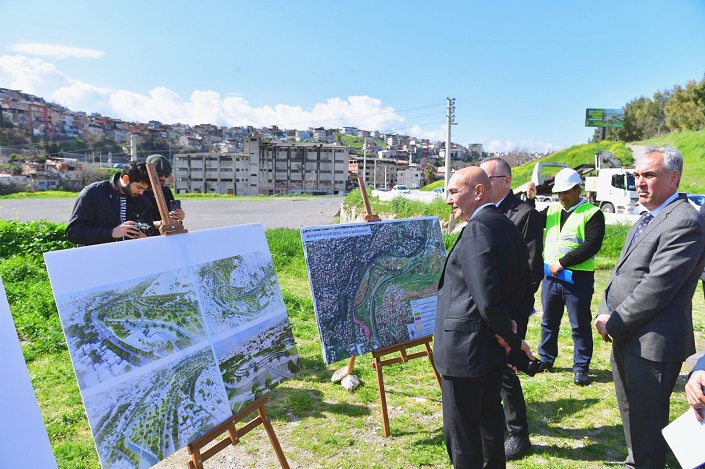 Atatürk Maskı’nın altından başlayarak İZBAN hattı ile Meles Deresi ve Yeşildere Caddesi arasında kalan bölgeyi bambaşka bir görüntüye kavuşturacak proje alanında kamulaştırılan binaların yıkımı devam ediyor. Başkan Tunç Soyer, Yeşildere’ye giderek incelemelerde bulundu.